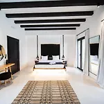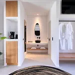 Några av de 10 ljudisolerade rummen på Agrari Bo Suites By Mykonos Rocks är inredda med vitrinskåp och soffa samt har minibar. Badrum erbjuder en duschkabin, en separat toalett och ett handfat.
